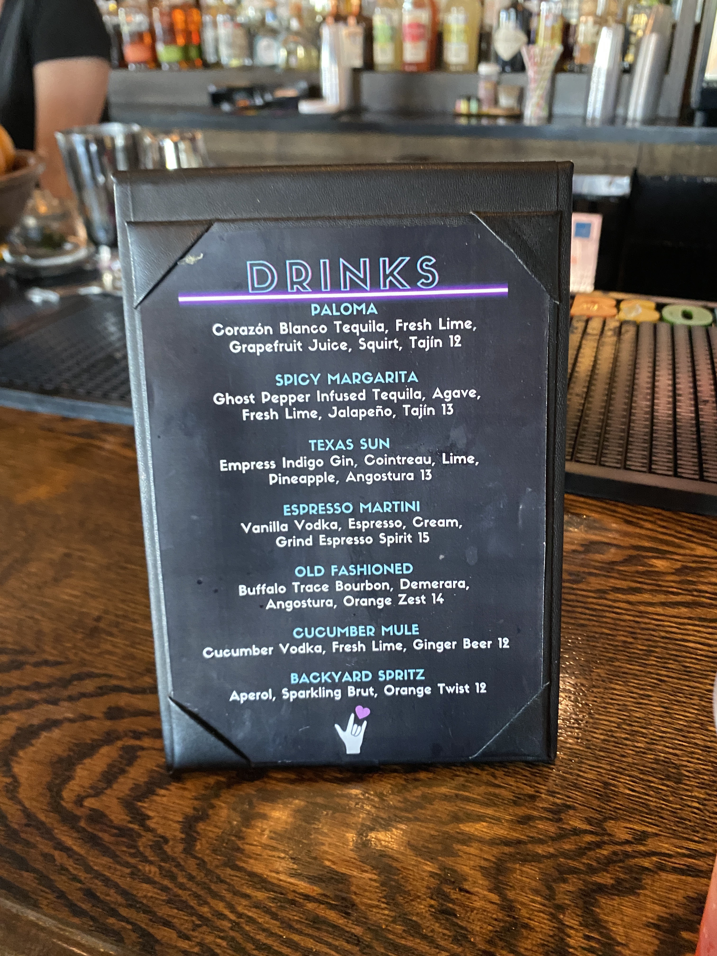 You’ll find me over in Southeast Austin at Drinks Backyard. I go there when I’m in the mood for a more relaxed, outdoor experience. The huge patio is perfect for everything from casual hangouts to live music nights. The dog park makes it a must-visit for pet owners.