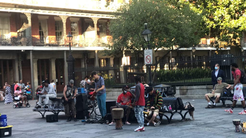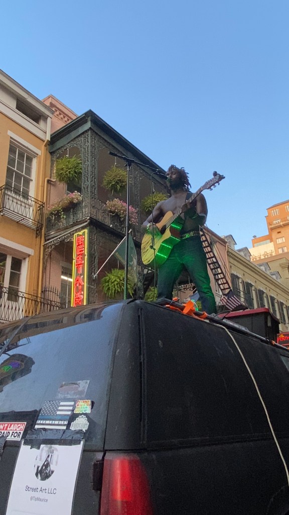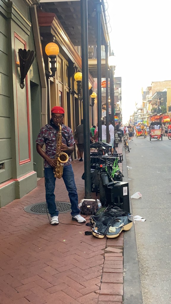 One thing I’ve learned from locals is to approach dining on Bourbon Street with caution. While I’ve never had a bad experience, cleanliness concerns have been reported, so it’s always a good idea to do your research. That said, Bourbon Street is a hub of live music, bars, shops, and street art, reminiscent of Austin’s 6th Street—only better, because you can walk around with your drinks!